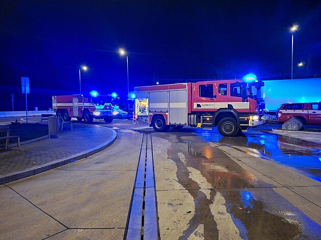 Hasiči likvidovali noční požár kamionu na odpočívadle dálnice D52 na Brněnsku. V kabině našli mrtvého člověka. (19. března 2024 )