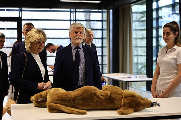 Prezident Petr Pavel s manželkou Evou navštívil na Veterinární univerzitě v Brně simulační centrum, kde se studenti na modelech psů zdokonalují v praxi. (25.2.2025)