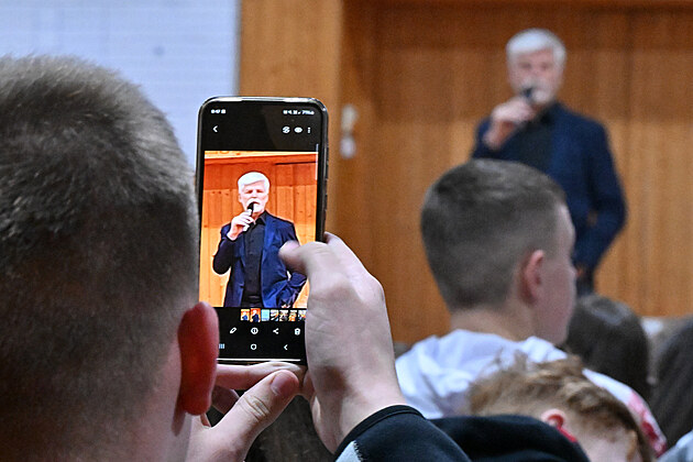 Debata s žáky základní školy v Lednici během pokračující dvoudenní návštěvy prezidenta Petra Pavla v Jihomoravském kraji. (26. února 2025)