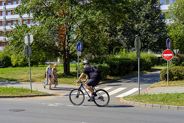 V jeden a půl kilometru dlouhém úseku brněnských ulic Botanická a Chodská stojí hned 48 značek oznamujících konec a zase začátek stezky s povolením vjezdu na kole.