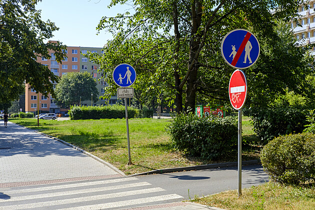 V jeden a půl kilometru dlouhém úseku brněnských ulic Botanická a Chodská stojí hned 48 značek oznamujících konec a zase začátek stezky s povolením vjezdu na kole.