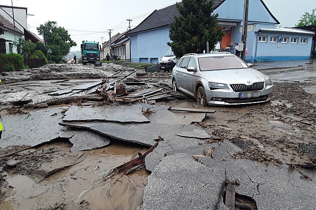 Následky čtvrtečních přívalových dešťů v Domaníně na Hodonínsku.
