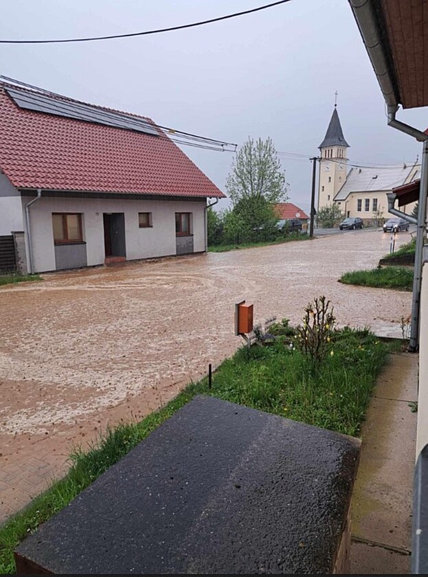 Následky přívalových dešťů pocítila i obec Tučapy na Uherskohradišťsku. (24. dubna 2025)