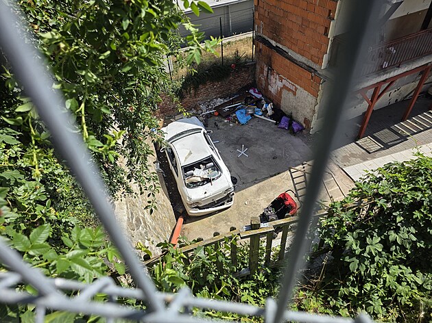 Znojemský dům, na jehož romské obyvatele si místní stěžují kvůli nepořádku, zápachu a hluku. (červen 2025)