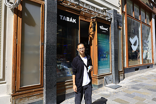 Test prodeje alkoholu a cigaret mladistvým. Tabák Valmont v Masarykově ulici v Brně. (. (5. srpna 2025)