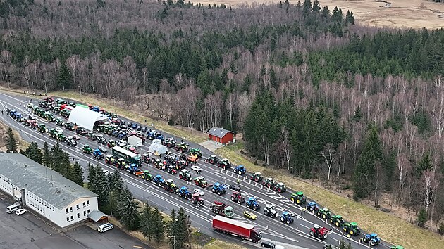 Čeští a němečtí farmáři blokovali hraniční přechod u hory Svatého Šebestiána.
