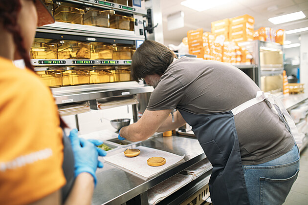 Redaktor brněnské redakce MF DNES Jiří Punčochář si vyzkoušel práci v kuchyni pobočky sítě rychlého občerstvení Popeyes, otevřené v centru jihomoravské metropole. (duben 2025)