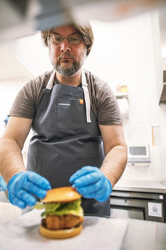 Redaktor brněnské redakce MF DNES Jiří Punčochář si vyzkoušel práci v kuchyni pobočky sítě rychlého občerstvení Popeyes, otevřené v centru jihomoravské metropole. (duben 2025)