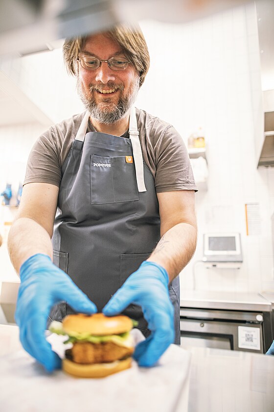 Redaktor brněnské redakce MF DNES Jiří Punčochář si vyzkoušel práci v kuchyni pobočky sítě rychlého občerstvení Popeyes, otevřené v centru jihomoravské metropole. (duben 2025)