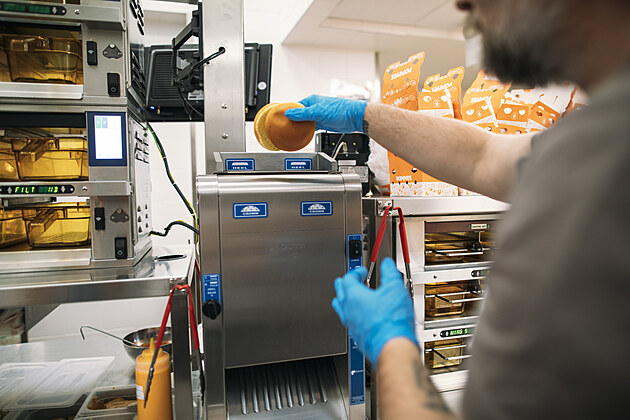 Redaktor brněnské redakce MF DNES Jiří Punčochář si vyzkoušel práci v kuchyni pobočky sítě rychlého občerstvení Popeyes, otevřené v centru jihomoravské metropole. (duben 2025)