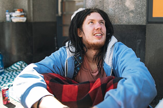 První tři čekatelé na otevření brněnské pobočky fastfoodového řetězce Popeyes, které je v plánu v úterý 29. dubna 2025, „kempují“ na místě už od neděle. Odměnou jim budou kuřecí sendviče na rok zdarma. Na snímku Filip z Bratislavy.