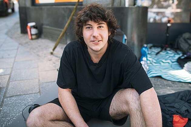 První tři čekatelé na otevření brněnské pobočky fastfoodového řetězce Popeyes, které je v plánu v úterý 29. dubna 2025, „kempují“ na místě už od neděle. Odměnou jim budou kuřecí sendviče na rok zdarma. Na snímku Honza z Brna.
