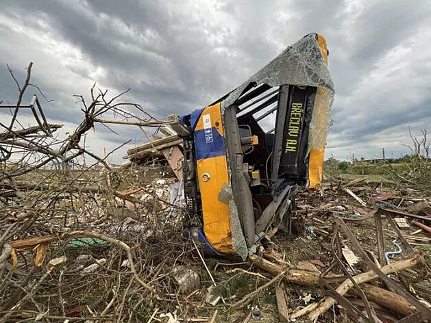 Autobus skončil daleko v poli. Pro cestující z něj přiletěl rakouský vrtulník.
