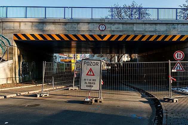 V železničním podjezdu v brněnské Šámalově ulici začalo rozšiřování úzké silnice. (18. února 2025)
