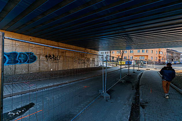 V železničním podjezdu v brněnské Šámalově ulici začalo rozšiřování úzké silnice. (18. února 2025)