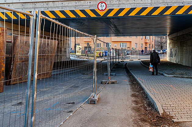 V železničním podjezdu v brněnské Šámalově ulici začalo rozšiřování úzké silnice. (18. února 2025)
