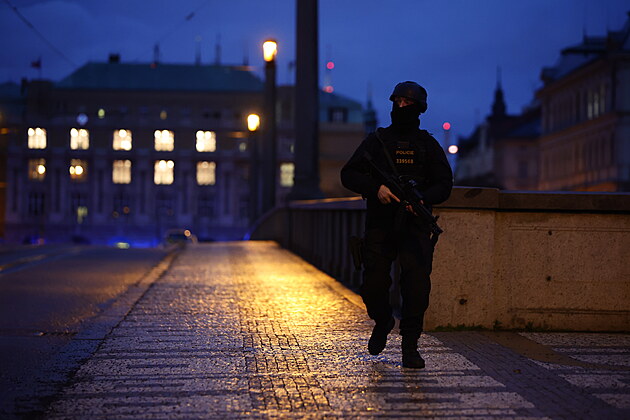 Policie zasahuje na náměstí Jana Palacha v Praze u nahlášené střelby ve škole. (21. prosince 2023)