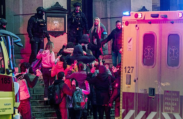 Policie zasahuje na náměstí Jana Palacha v Praze u nahlášené střelby ve škole. (21. prosince 2023)