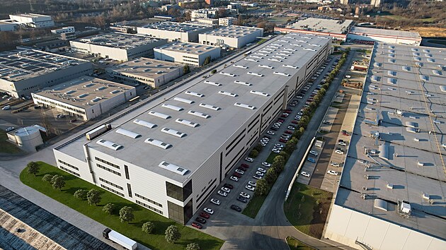 Vizualizace budoucí dvoupatrové haly, které developerská společnost CTP přezdívá doubledecker. V pozadí s červenými pruhy budovy, kde působí Zetor. Předtím sídlil v celé ploše na fotografii.