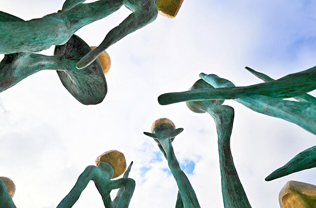 Socha Hrachovina od Jaromíra Garguláka připomíná klíčící hrách.