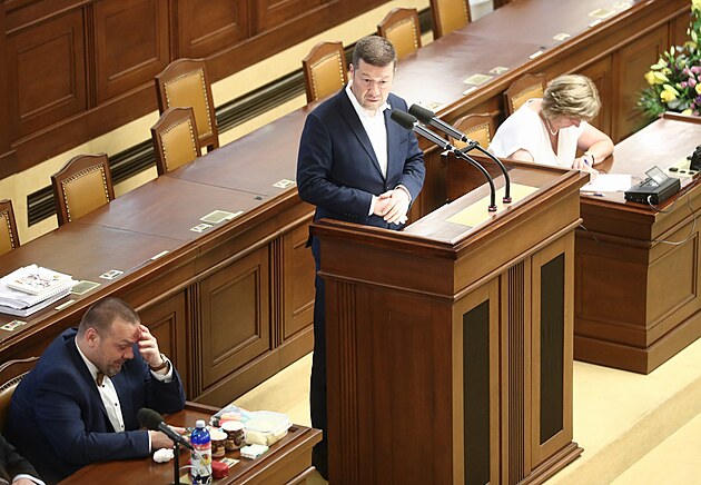 Předseda SPD Tomio Okamura na mimořádné schůzi Sněmovny 11. července 2024