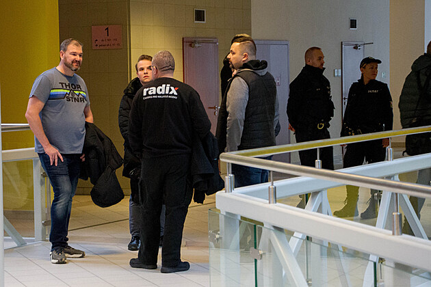 Městský soud v Brně začal na čtvrtý pokus projednávat případ vydání knih, které zpochybňují fakta o holokaustu. Na snímku jsou příznivci obžalovaných. (26. listopadu 2024)