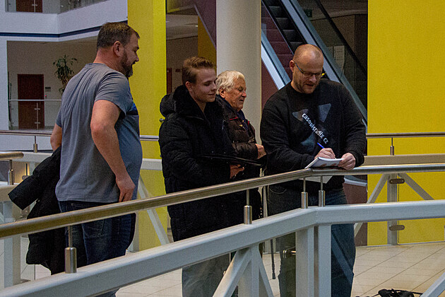 Městský soud v Brně začal v úterý 26. listopadu na čtvrtý pokus projednávat případ vydání knih, které zpochybňují fakta o holokaustu. Na snímku jeden z obžalovaných Pavel Kamas (vpravo) a jeho příznivci.