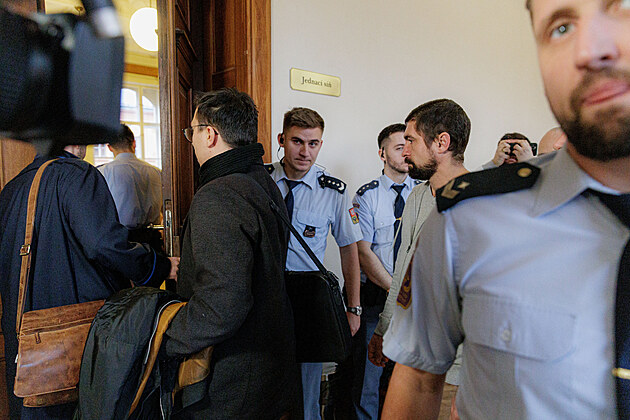 Krajský soud v Brně se 15. prosince 2023 začal zabývat případem vraždy Roma u Brněnské přehrady, obžalovaný Roman R. (v šedé mikině) je muž původem z Ukrajiny.