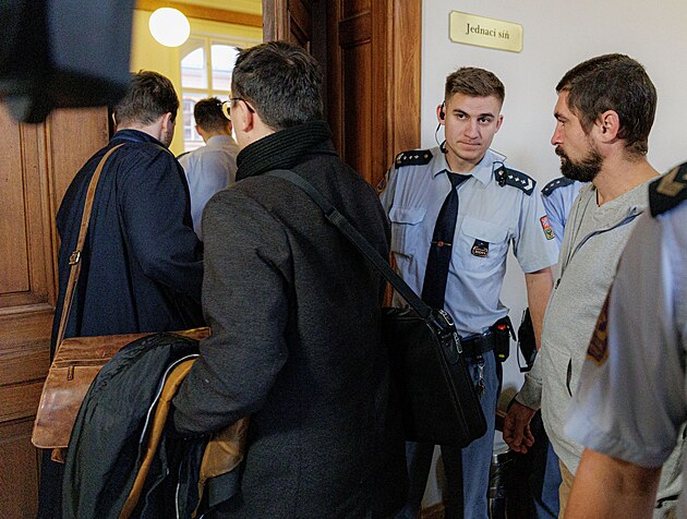 Krajský soud v Brně se 15. prosince 2023 začal zabývat případem vraždy Roma u Brněnské přehrady, obžalovaný Roman Rohozin (v šedé mikině) je muž původem z Ukrajiny.