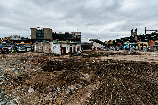 Obchodní dům Tesco u brněnského hlavního nádraží jde k zemi. (13. ledna 2025)