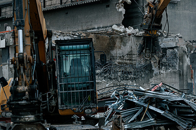 Obchodní dům Tesco u brněnského hlavního nádraží jde k zemi. (13. ledna 2025)