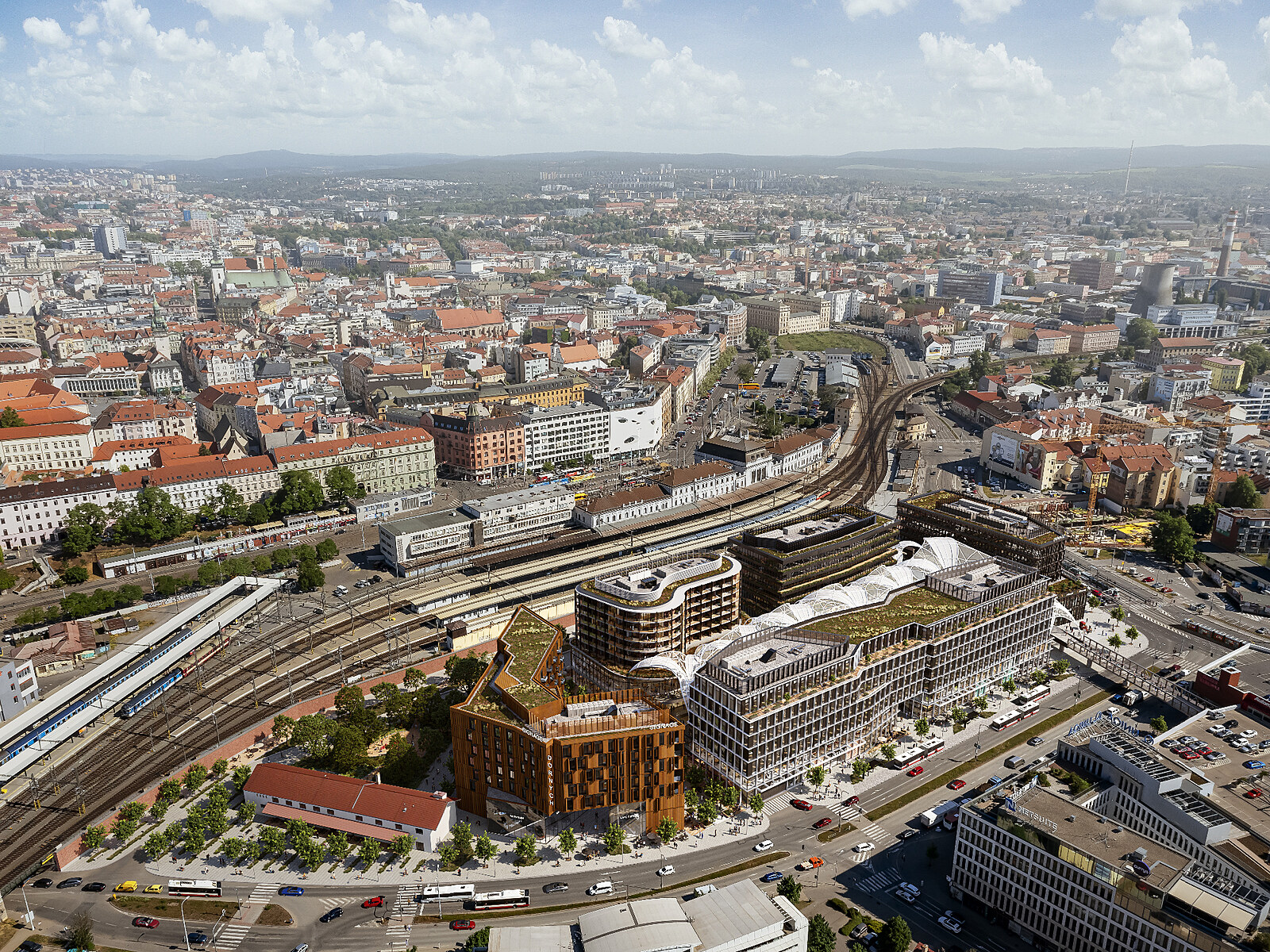 Lokalita vedle hlavního brněnského nádraží dostane novou podobu. Do čtyř let zde má místo starého Teska vyrůst podle projektu Dornych moderní čtvrť s náměstím lemovaným šesti vysokými budovami.