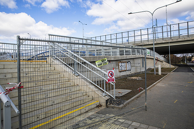 Vstup na lávku přes řeku Svitavu u brněnského Tomková náměstí je stále zavřený, i když měla začít sloužit už v roce 2022. (17. března 2025)