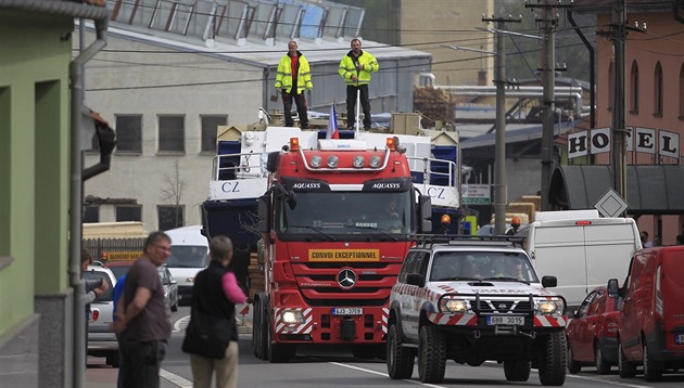 Při takových průjezdech pomáhá situaci zajišťovat šest doprovodných vozidel. „Hlídají to zepředu i zezadu. Když jedeme vesnicí, musíme uzavřít cestu, protože by se nám protijedoucí auta nevyhnula,“ vysvětloval Novák.