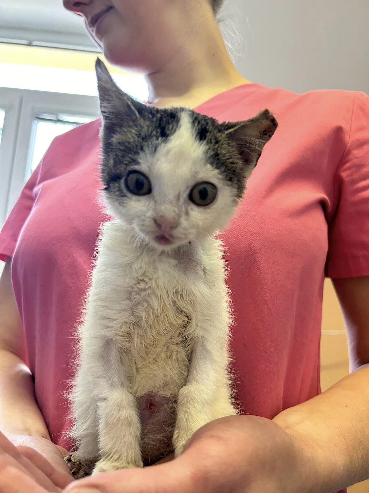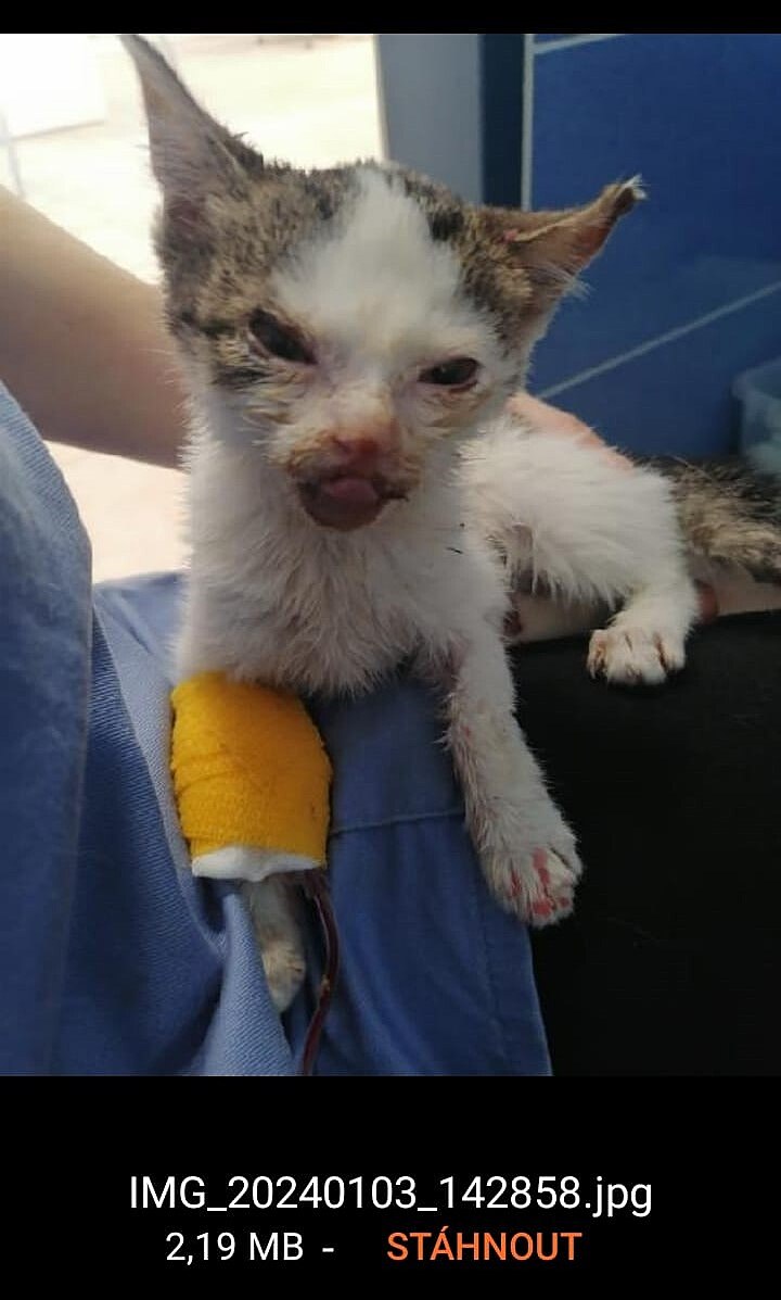 Po nálezu na začátku roku 2024 v Brně vážilo týrané kotě jen 550 gramů.