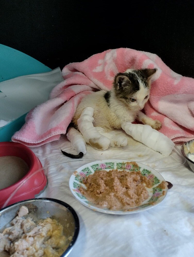 Týrané koťátko nalezené v Brně bylo podvyživené, popálené a mělo zlomený ocas.