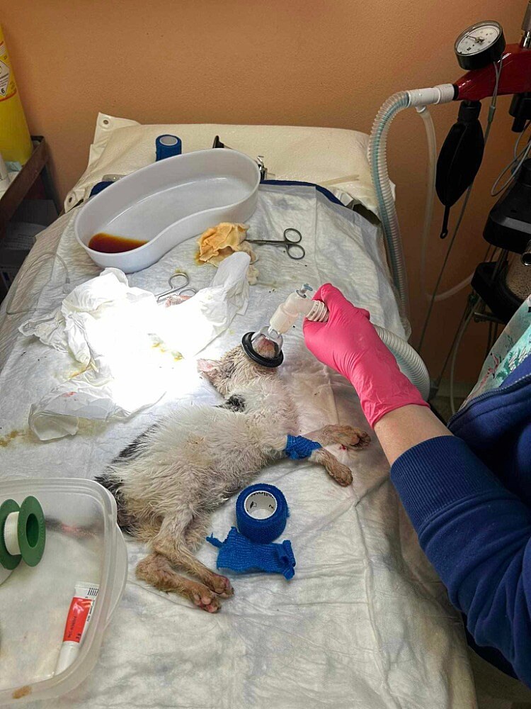 Jiří Aberle převezl týranou Jiřinku na veterinární kliniku do Letovic na Blanensku. Později u něj našla nový milující domov.