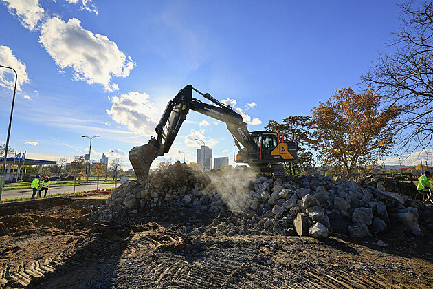 Čerpací stanici na severní straně Opuštěné ulice v Brně už připomíná jen suť, která zbyla po zbourání demoliční četou v minulých dnech. (přelom října a listopadu 2025)