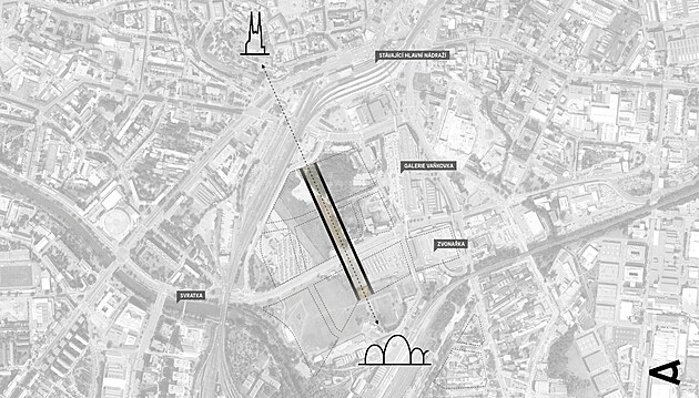 Trasa vedení nového bulváru, který propojí střed města a nové nádraží.