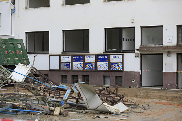 Stroje bourají zašlé objekty průmyslového areálu bez historické hodnoty, jejich úpravy za účelem bydlení by nebyly vhodné.
