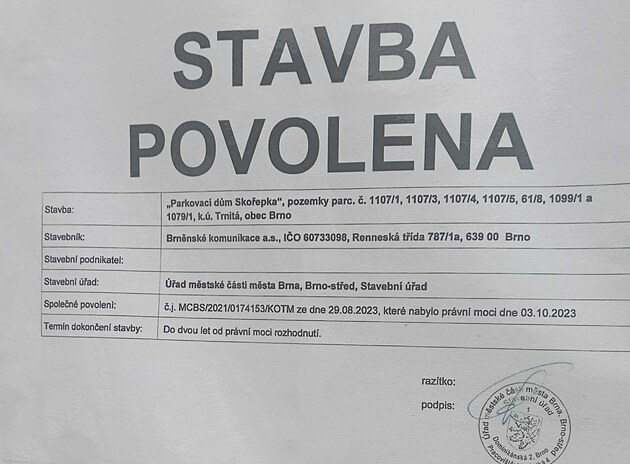 Stavební povolení na parkovací dům na ulici Skořepka bylo vydáno už v říjnu 2023.