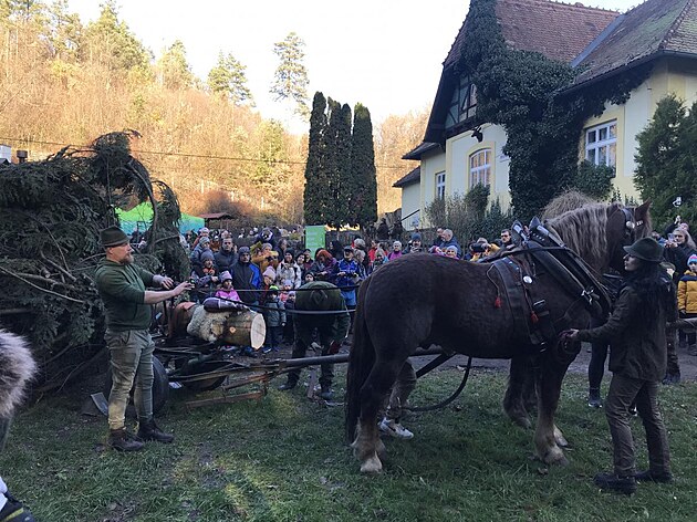 Stejně jako v minulosti i v současnosti pokračuje tradice vánočních stromů na náměstí Svobody v Brně také tím, že jej do centra města dopraví na koňském povozu.