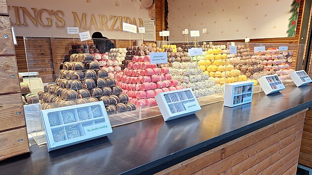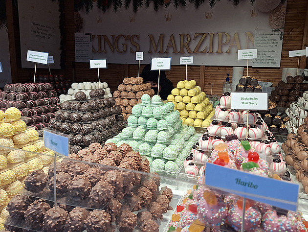Na sladkou tečku si zajdu na marcipánové kuličky. Osm kousků - v příchutích jako vaječný likér, ferrero či dokonce dubajská čokoláda - vyjde na 800 korun. Výhodné balení dvaceti, ručně vyráběných pochutin, stojí 1500 korun. Po takové cenové náloži je čas na něco k pití, a tak mířím ke stánku s „báječným vaječňákem“. Z několika druhů si lze vybrat půllitr za 450 korun, nebo sáhnout po sedmisetmililitrovém kávovém likéru „Hoax“ s karibským rumem a výběrovou kávou za 650 korun.