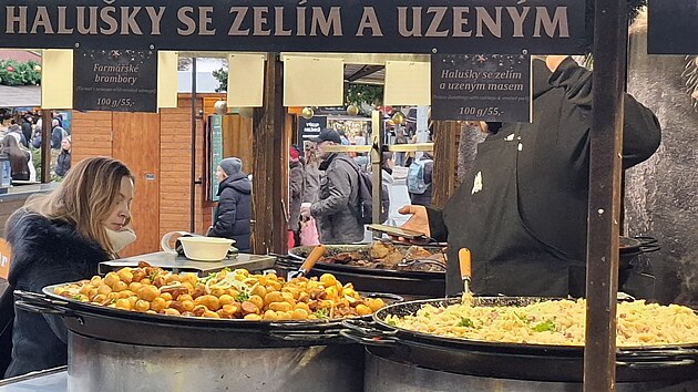 Při návštěvě Náměstí Svobody se ocitám přímo v srdci brněnských vánočních trhů. Výraznou vůní a vábnými obrazy mě brzy přiláká stánek jednoduše nazvaný „Speciality z grilu.“ V nabídce mají halušky, špekáčky na černém pivu, marinované špízy, vepřové koleno i steak z krkovice. Minimálně u špekáčku, který jsem zvolil za ochutnávkový vzorek, musím uznat, že chuť odpovídá lákavému vzhledu.