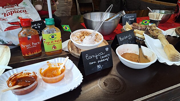 U stánku „La Brasa“ se na mě usmívá kuchařka, a začíná mi popisovat, co mají v nabídce. „Canjiquinha je kukuřičná polévka s vepřovým masem, stojí 80 korun. Máme i Barbecue mix za 250 korun nebo Cappelletti, polévku s těstovinami plněnými hovězím masem, také za 80,“ vysvětluje.