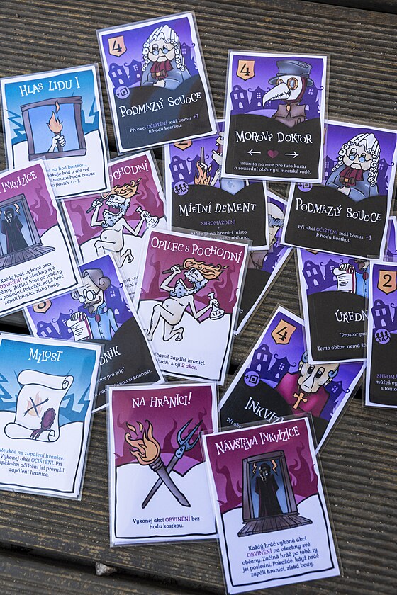 Karty ze hry Hon na čarodějnice, jejíž autorem je brněnský nadšenec Jakub Grim. (2025)