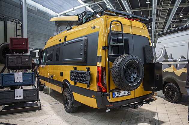 Dodávka pro dva potápěče na cestách. To je Mercedes-Benz Sprinter 4×4 nazývaný Falco z dílný VejnyWood