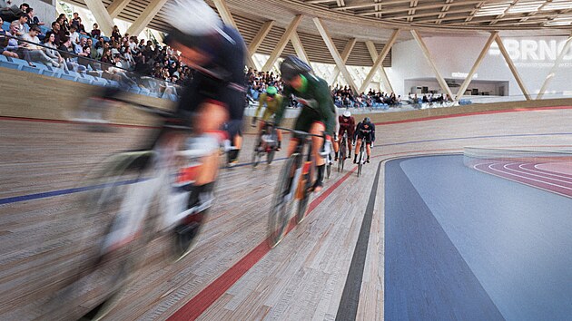 Zrovna nedávno magistrát schválil smlouvu na zpracování podrobné projektové dokumentace na stavbu dvojsportoviště, jehož součástí nebude jen atletická hala, která Brnu roky chybí, ale právě i dřevěná klopená dráha pro cyklisty o délce 250 metrů (na vizualizaci).