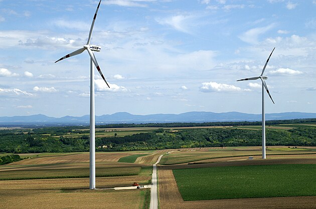Větrný park nacházející se u dolnorakouské obce Spannberg.