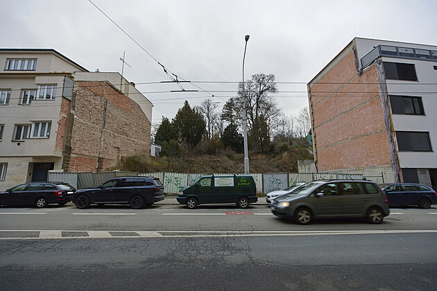 Po zbourané neorenesanční vile v ulici Hlinky zůstává už téměř tři roky prázdná plocha. (prosinec 2024)